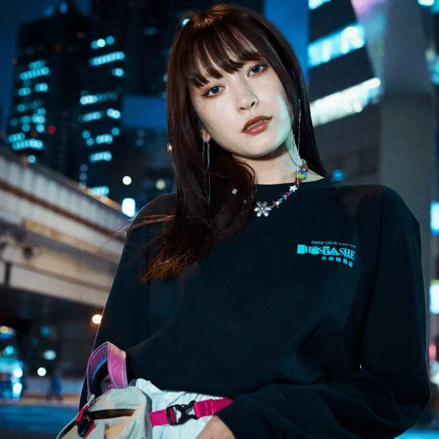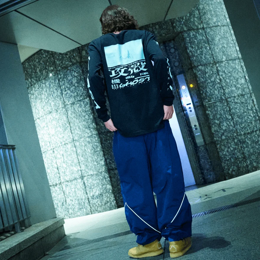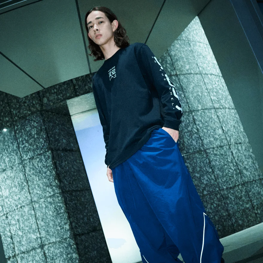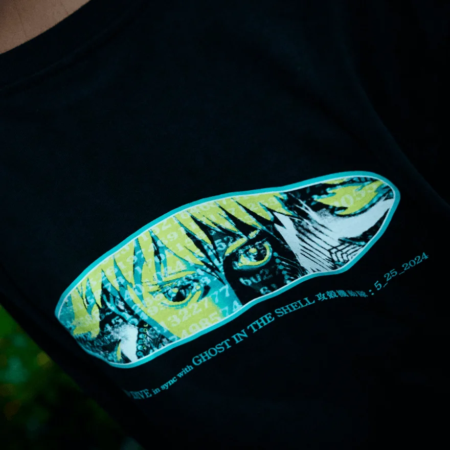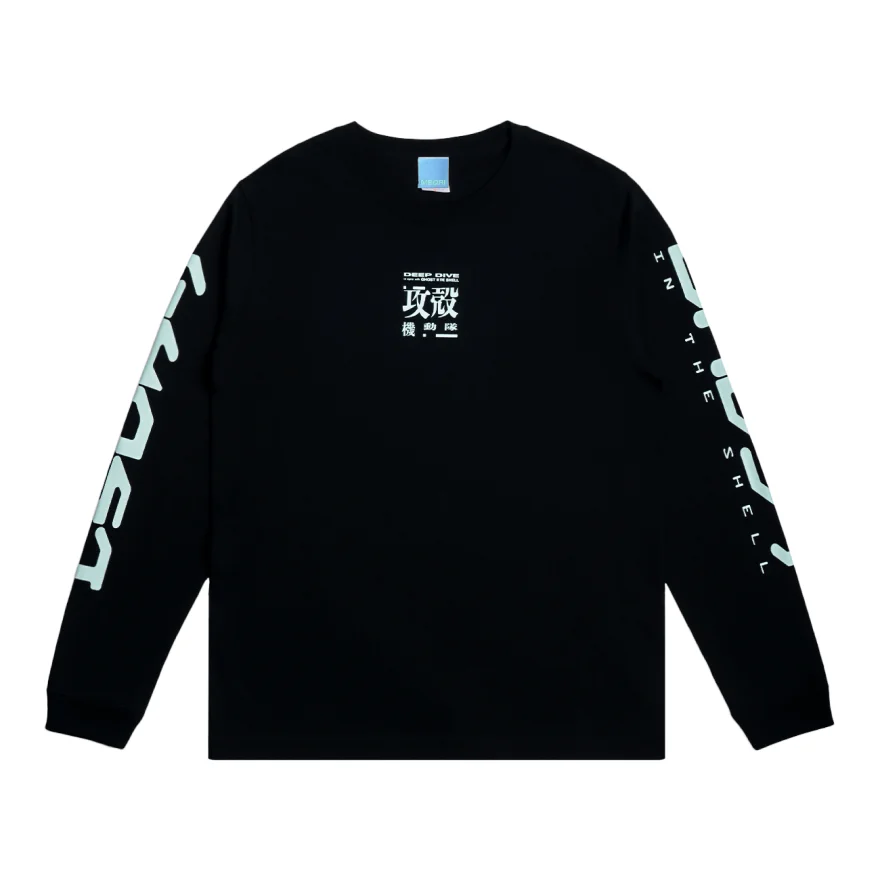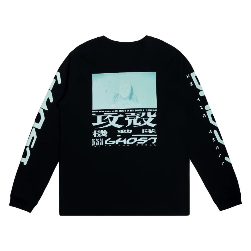 フロントには映画冒頭におけるモーションの最中のロゴを起用し、バックプリントには草薙素子と劇中に度々みる数字のビジュアルを組み合わせて表現したLong Sleeve Tee。