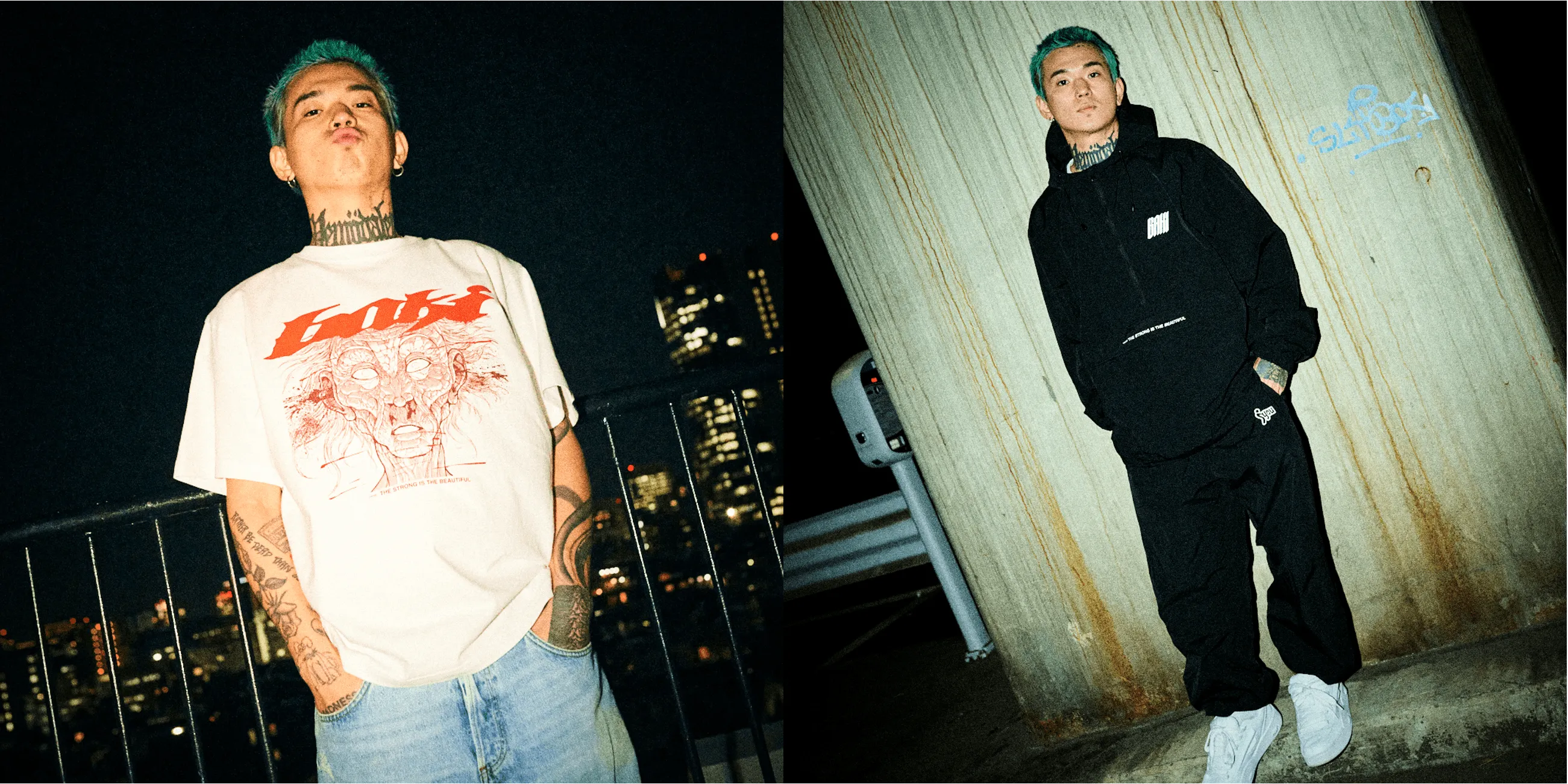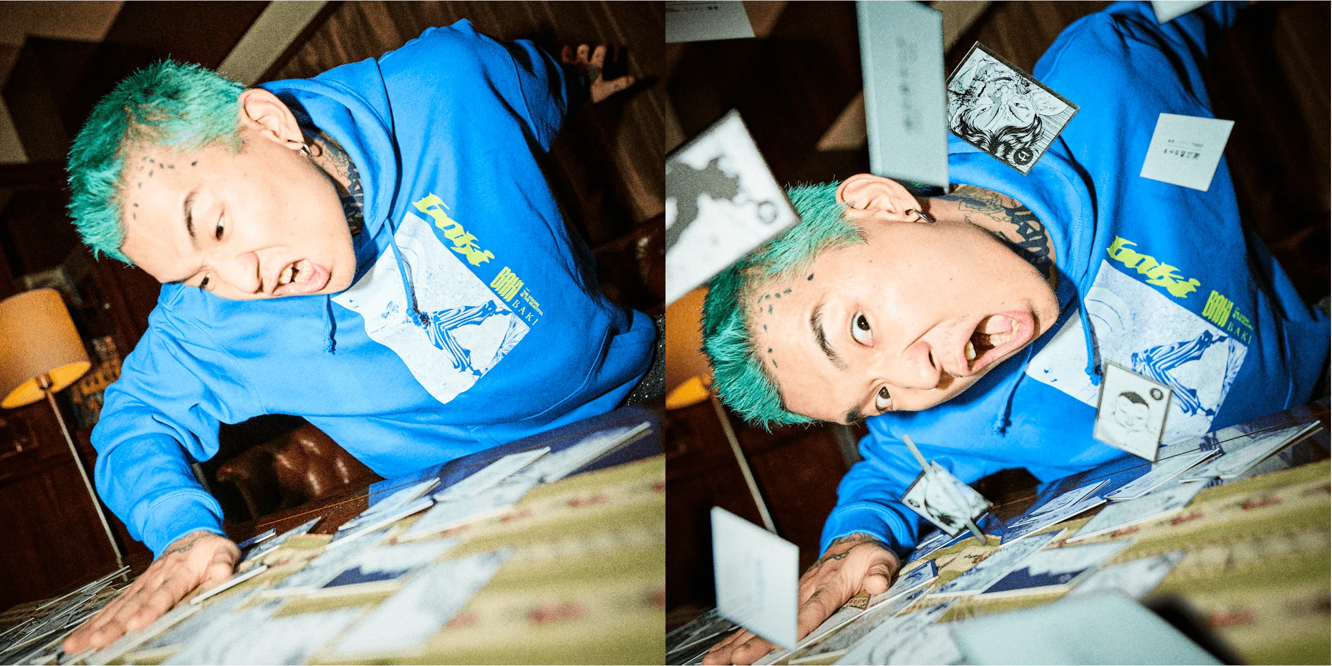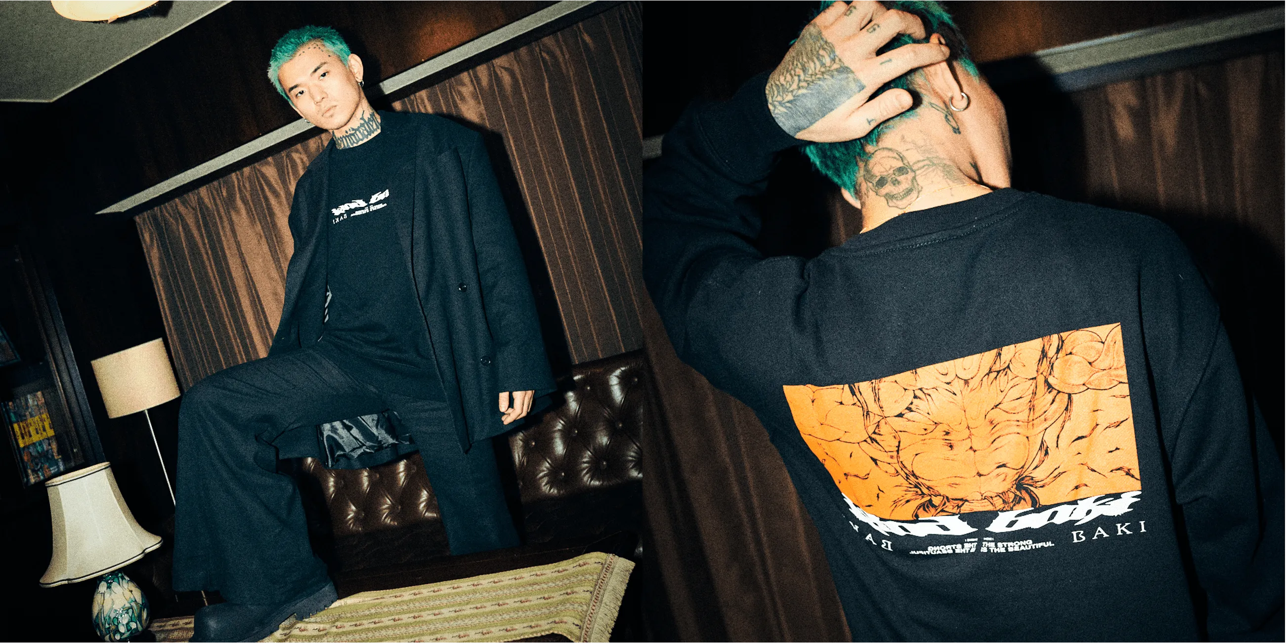 2019年にYouTuber・へきトラハウスの解散後、ミュージシャンとしてのキャリアをスタートしたJIN KAWAGUCHI。今年3月には5作目となる『I AM』を自身の運営する<Deathblow Records>からリリース、ファッション領域ではクリエイティブディレクターとしての活動も加速させている。今回、MEQRIが発表した『刃牙』第二弾コレクションでもモデルを務めたJINに、『刃牙』への思いを伺った。