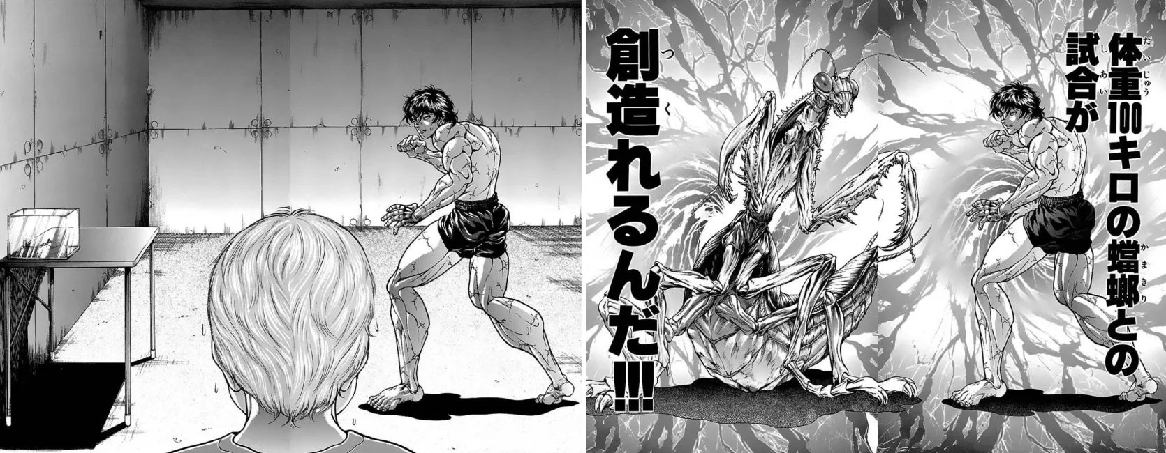 多分高校1年生ぐらいのときかな。『範馬刃牙』の第1-2巻、想像の中でカマキリと闘うという “リアルシャドー” の描写で、これはヤバいなと引き込まれて。そこから『グラップラー刃牙』などを読み返していきました。肉体的な強さだけでなく、 “強さとは何かを問いかける世界観”はめちゃくちゃ好きでしたね。