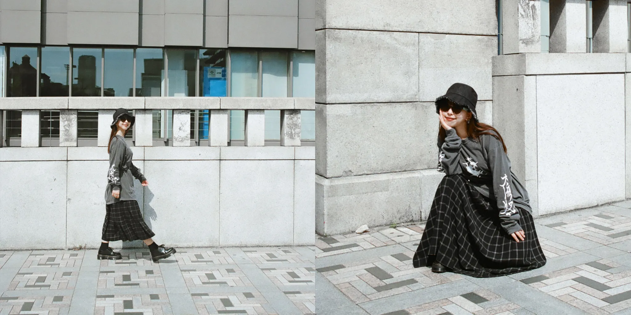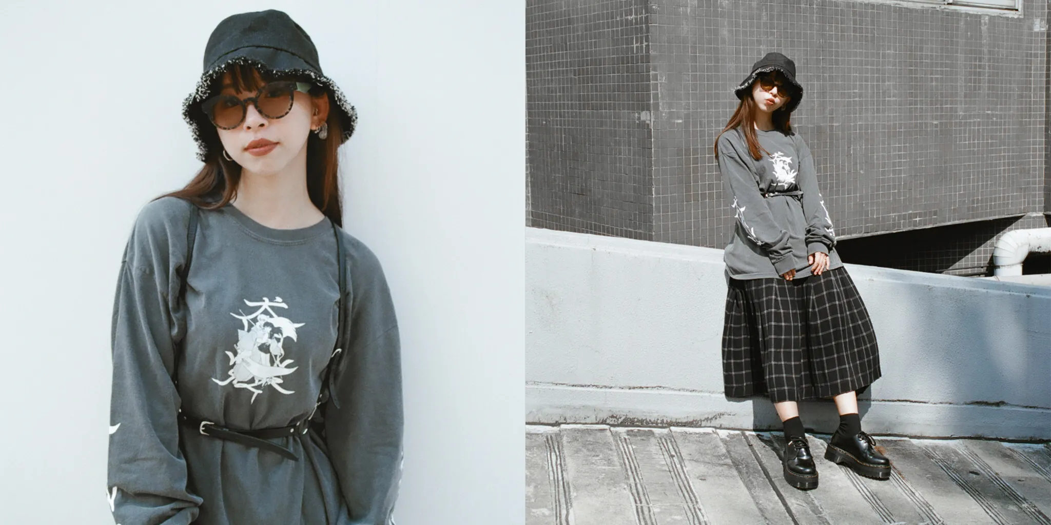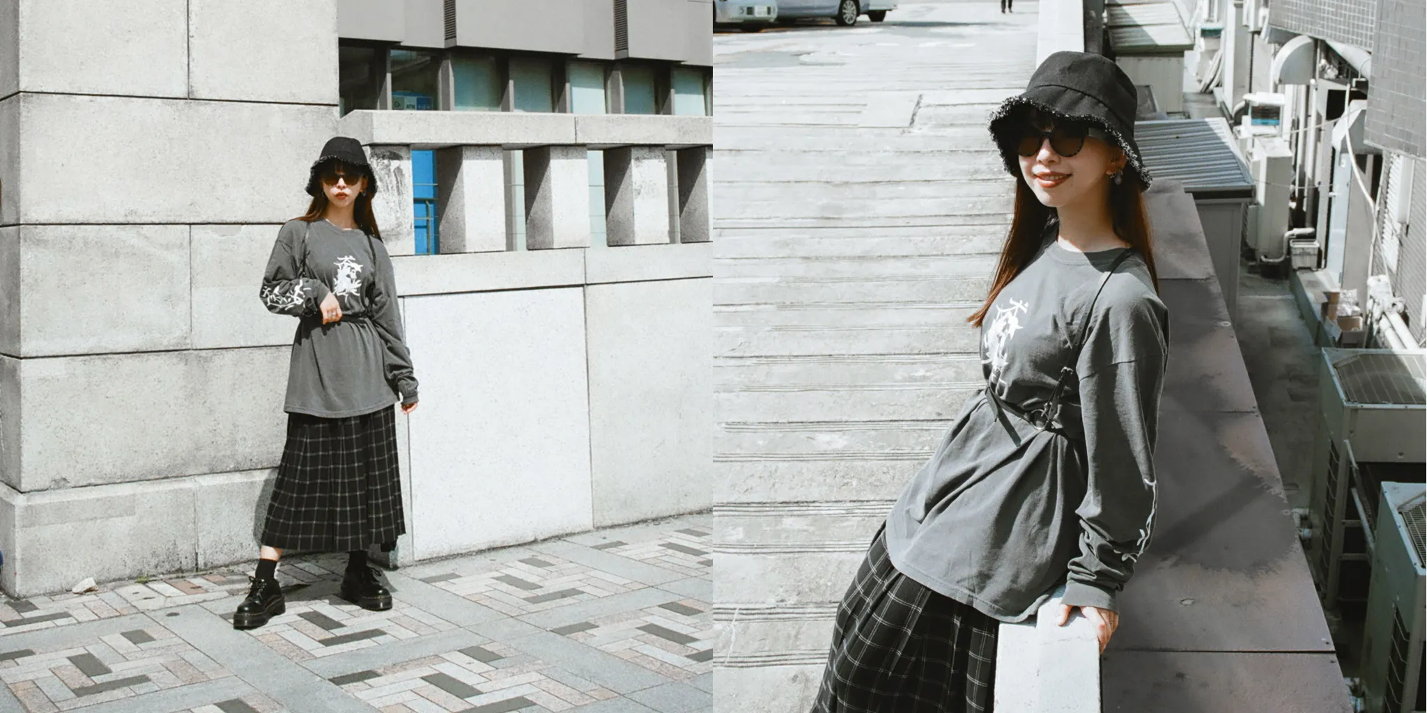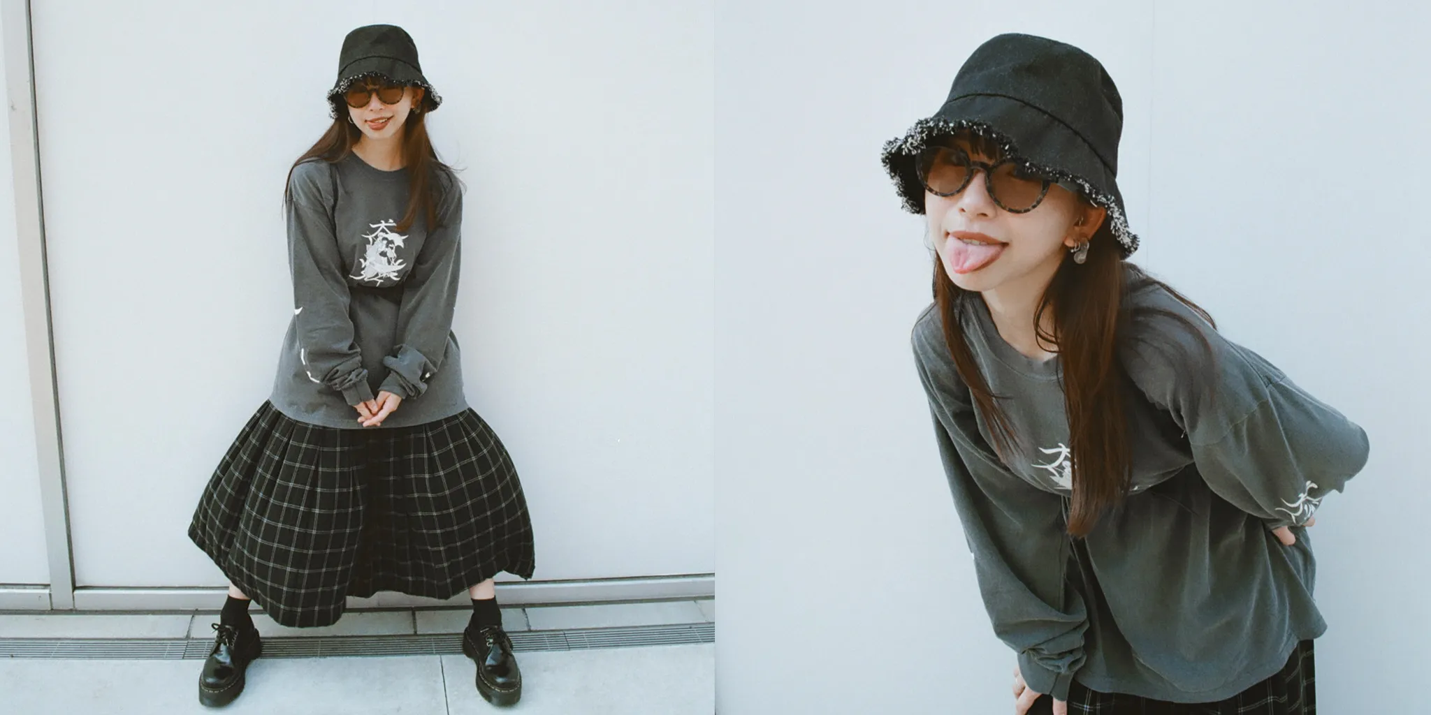 ちょま:全体のシルエットを大切にしてる!私は、上下共にボリュームをだすOラインが好きで、今回のコーディネートみたいにゆったり着る中にベルトとかハーネスとか小物で締めることを意識してる。あとはスカートの丈とか、ブーツの長さはかなりこだわってスタイリングしてるよ。