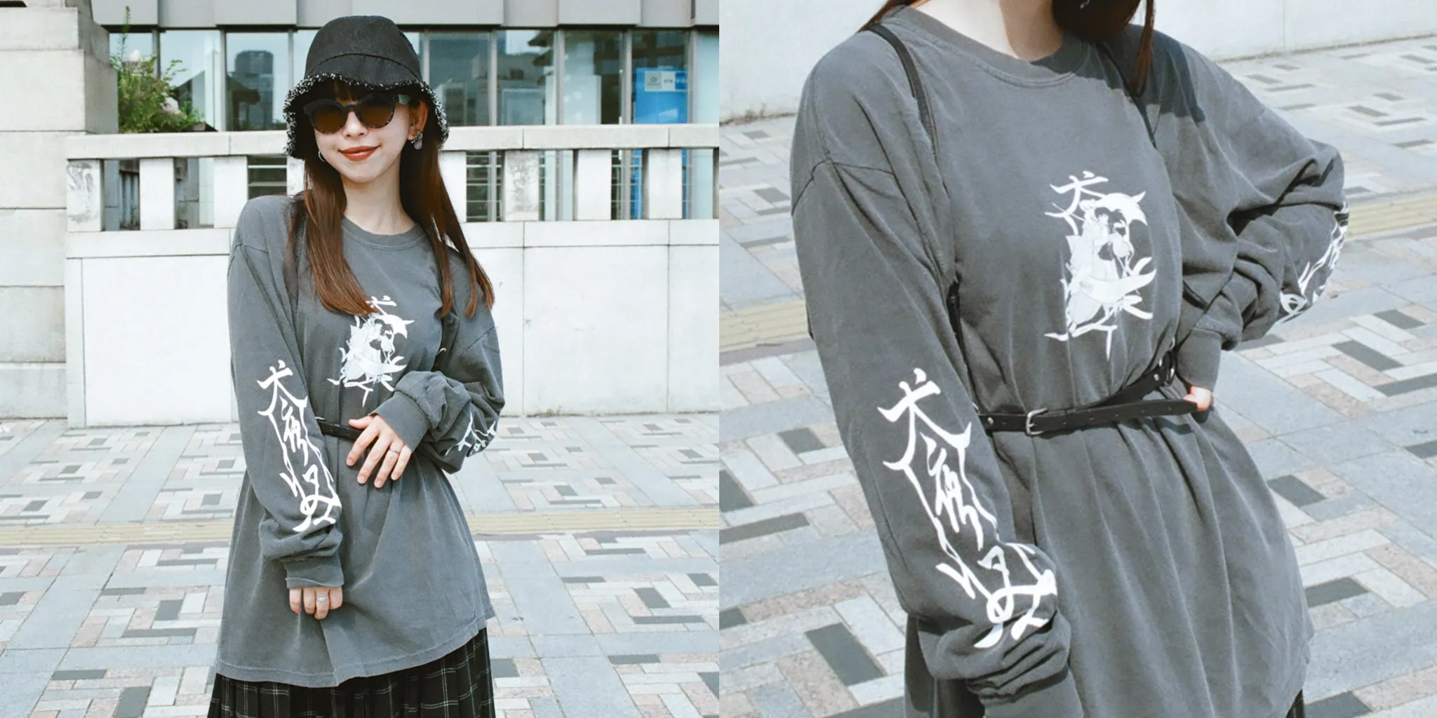 Lei:ちょまちゃんといえば、モノトーンだよね!「犬夜叉 Long Sleeve Tee 明日」は『犬夜叉』 クライマックスシーンが印象的なアイテムだけど、なんでこのアイテムを選んでくれたの?