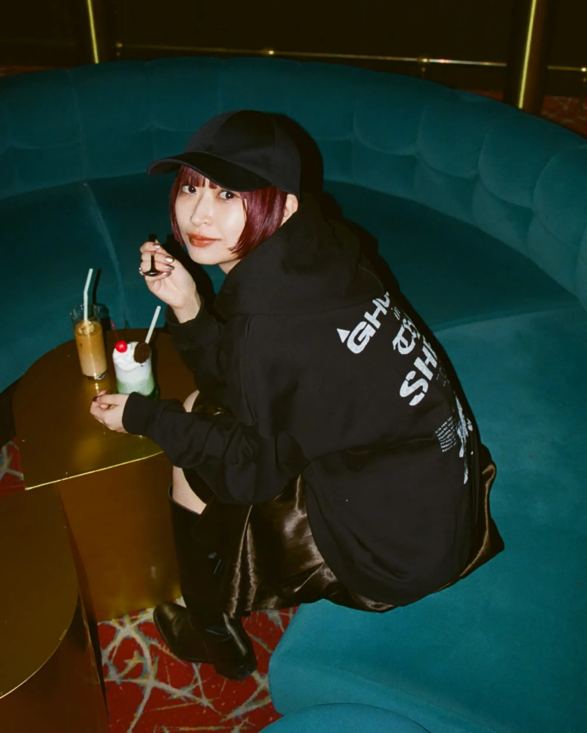 Lei:今日はMEQRIから好きなアイテムを選んでいただき、私物でスタイリングをしていただいたのですが、「攻殻機動隊 Hoodie ARACHNIDA」を選んだ理由を教えてください。