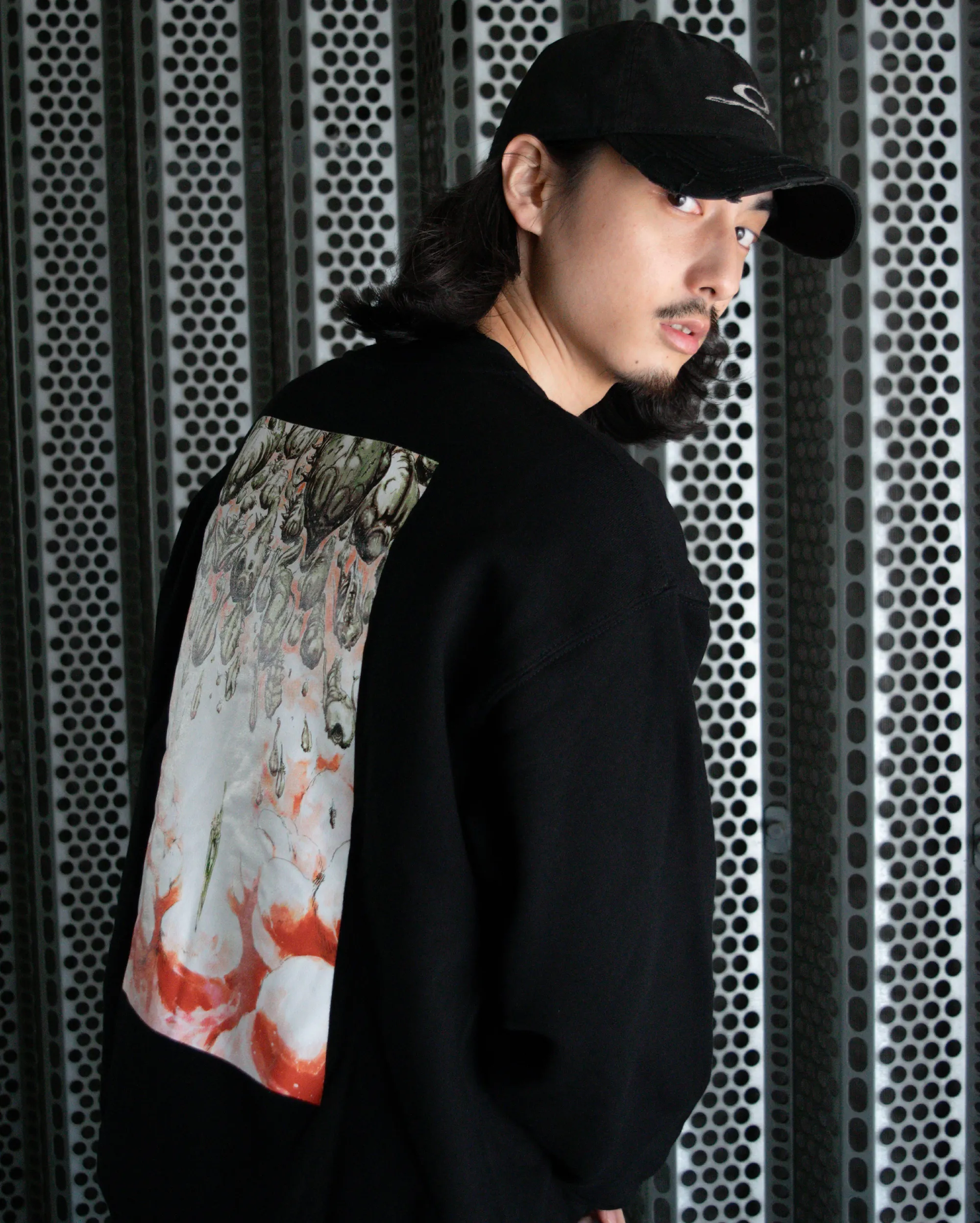 拓真:フロントのグラフィックも気に入っているんですけど、着た時のシルエットがめっちゃいいです!僕、クルーネックのスウェットが鬼大好きなんですよ(笑)。常に着ていたくて結構持っているんですけど、スウェットの中でも綺麗めに着れるし、絶妙な生地感が良いです。