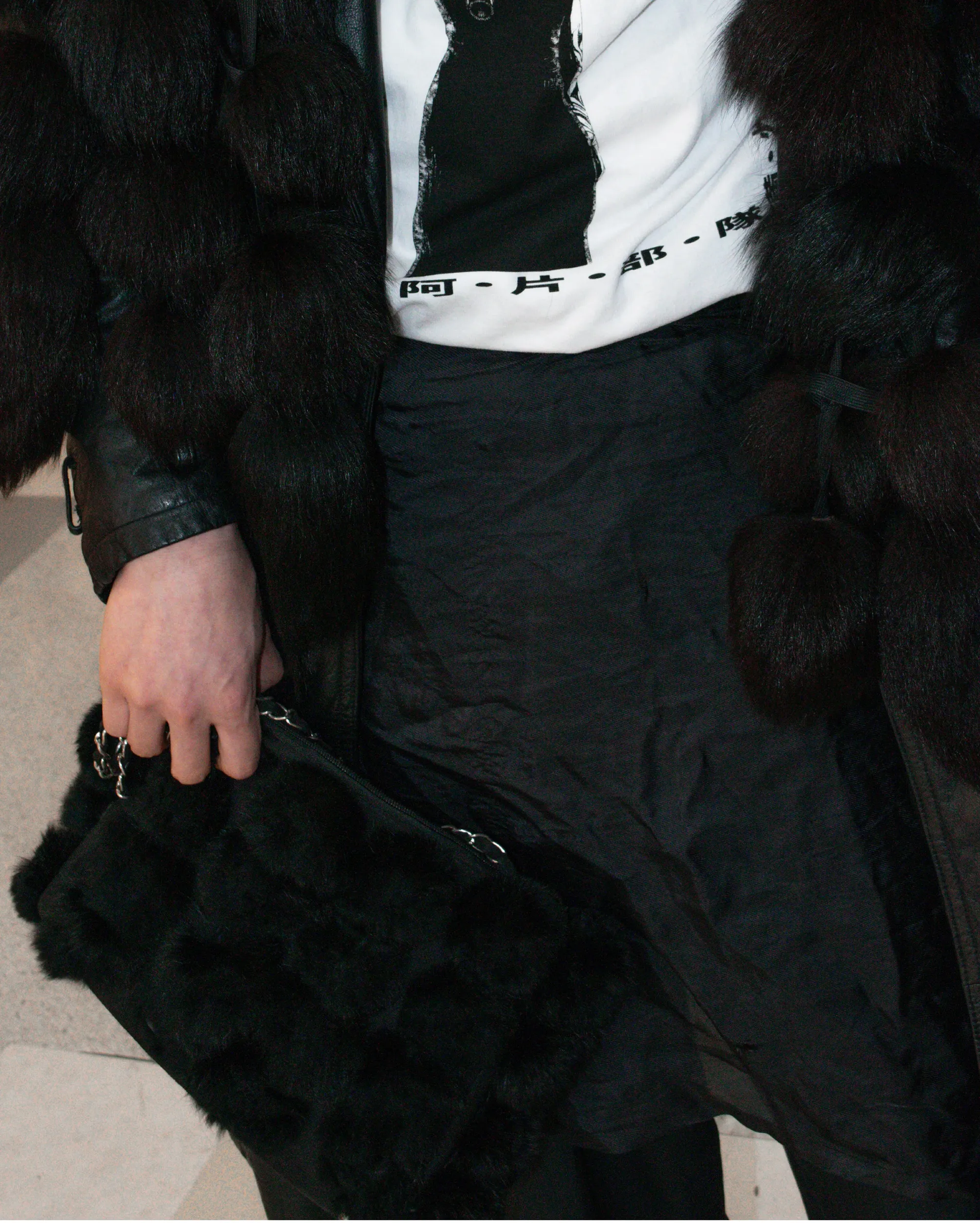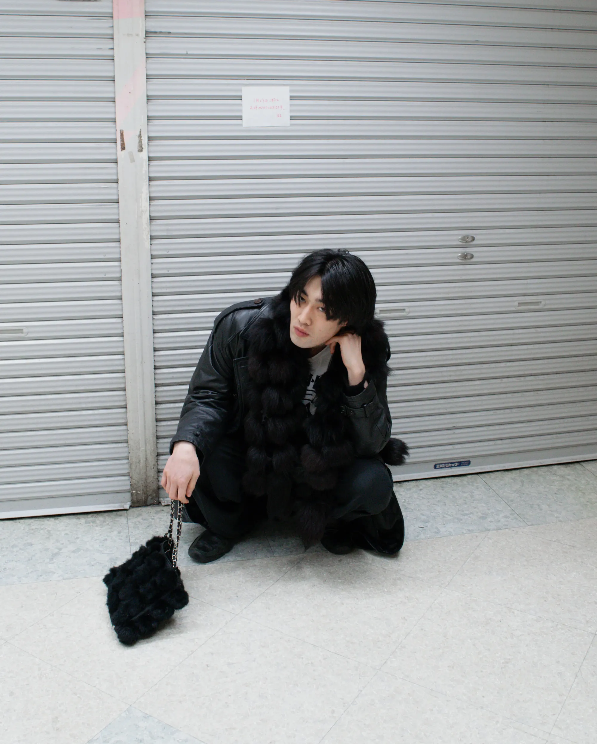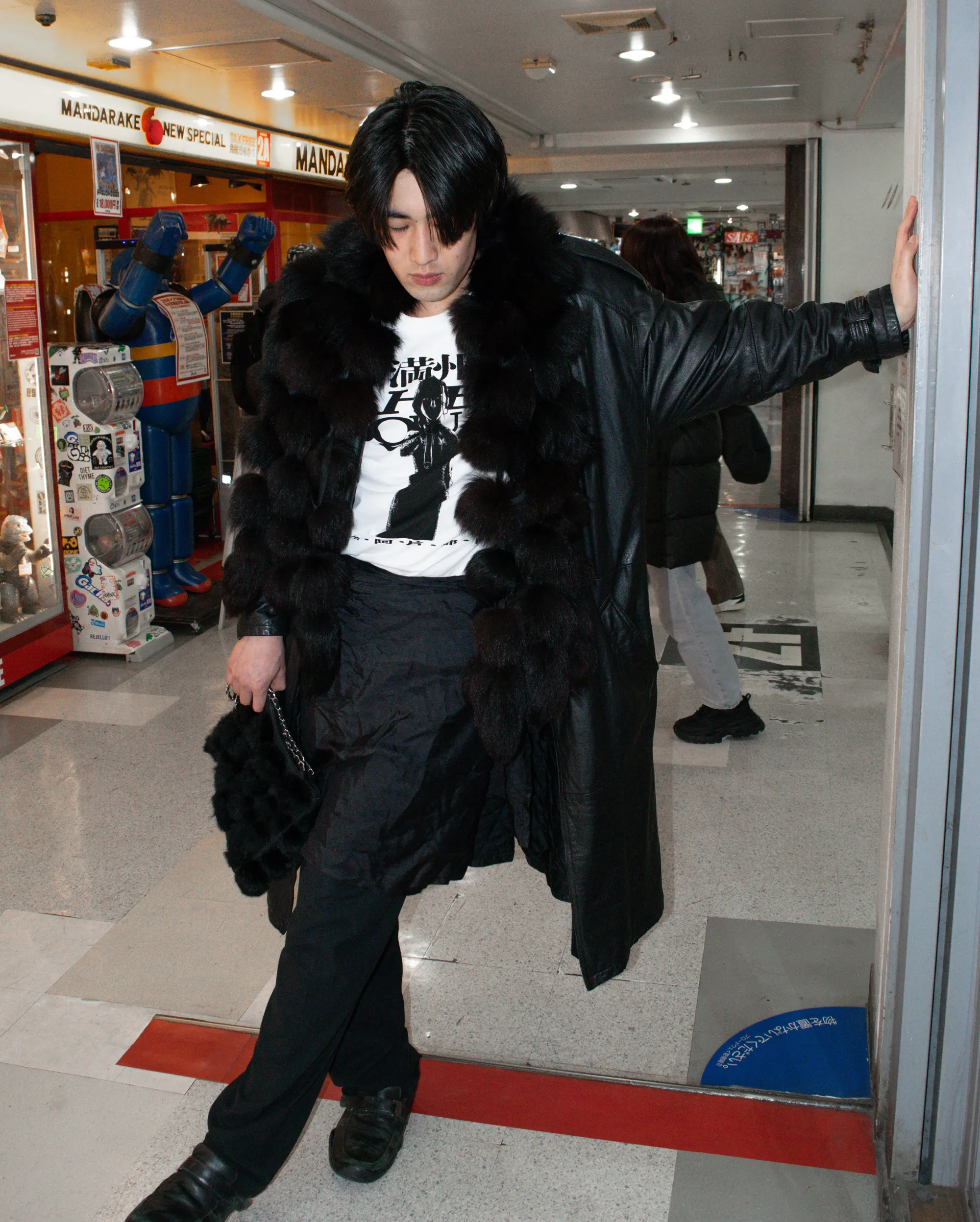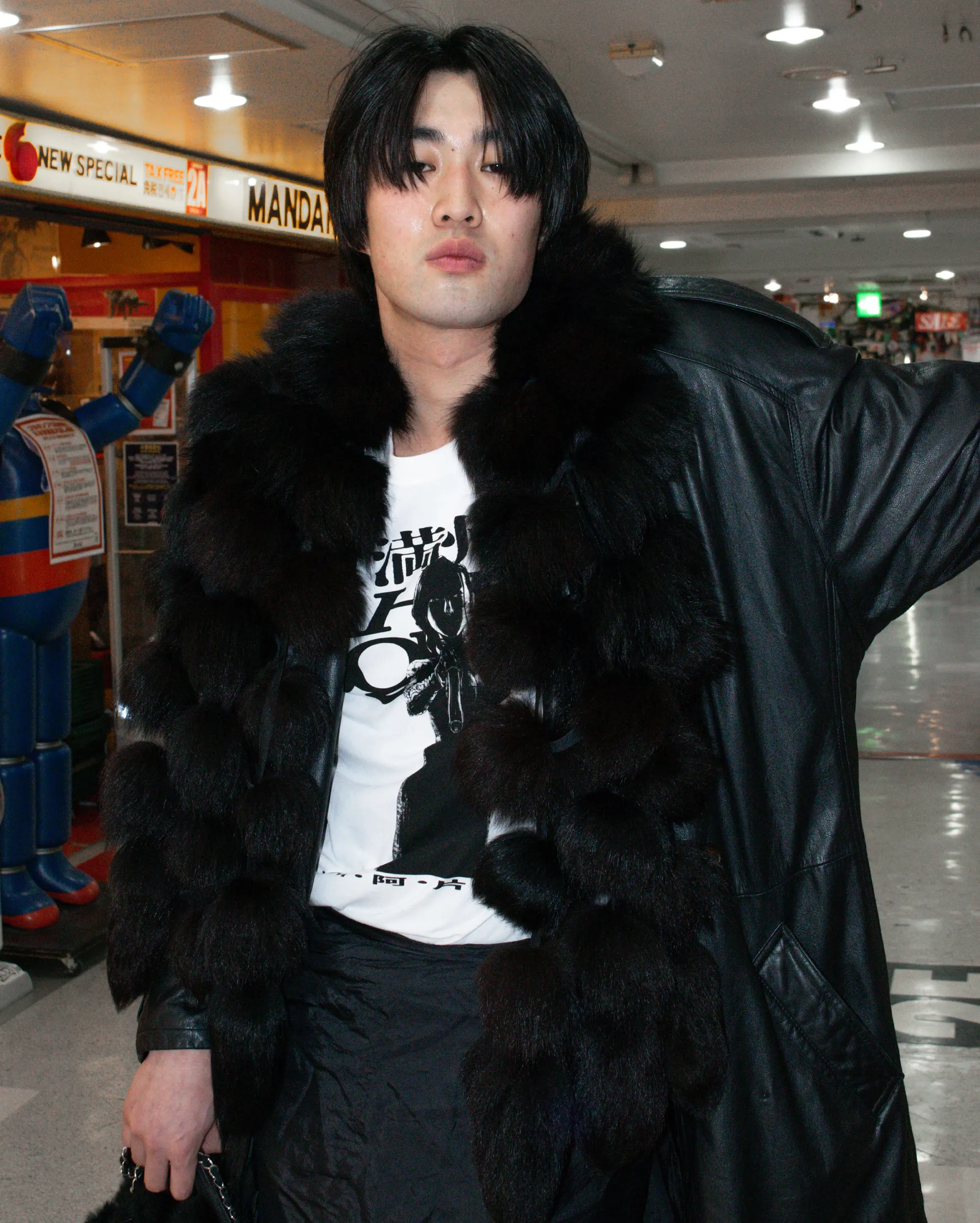 Takuma:今日は全部ヴィンテージです!このファーは陶芸をされているおばあちゃんが昔お召しになっていたもので、お皿を販売するついでにご自宅で売っていたものなんです。1000円で手に入れました(笑)