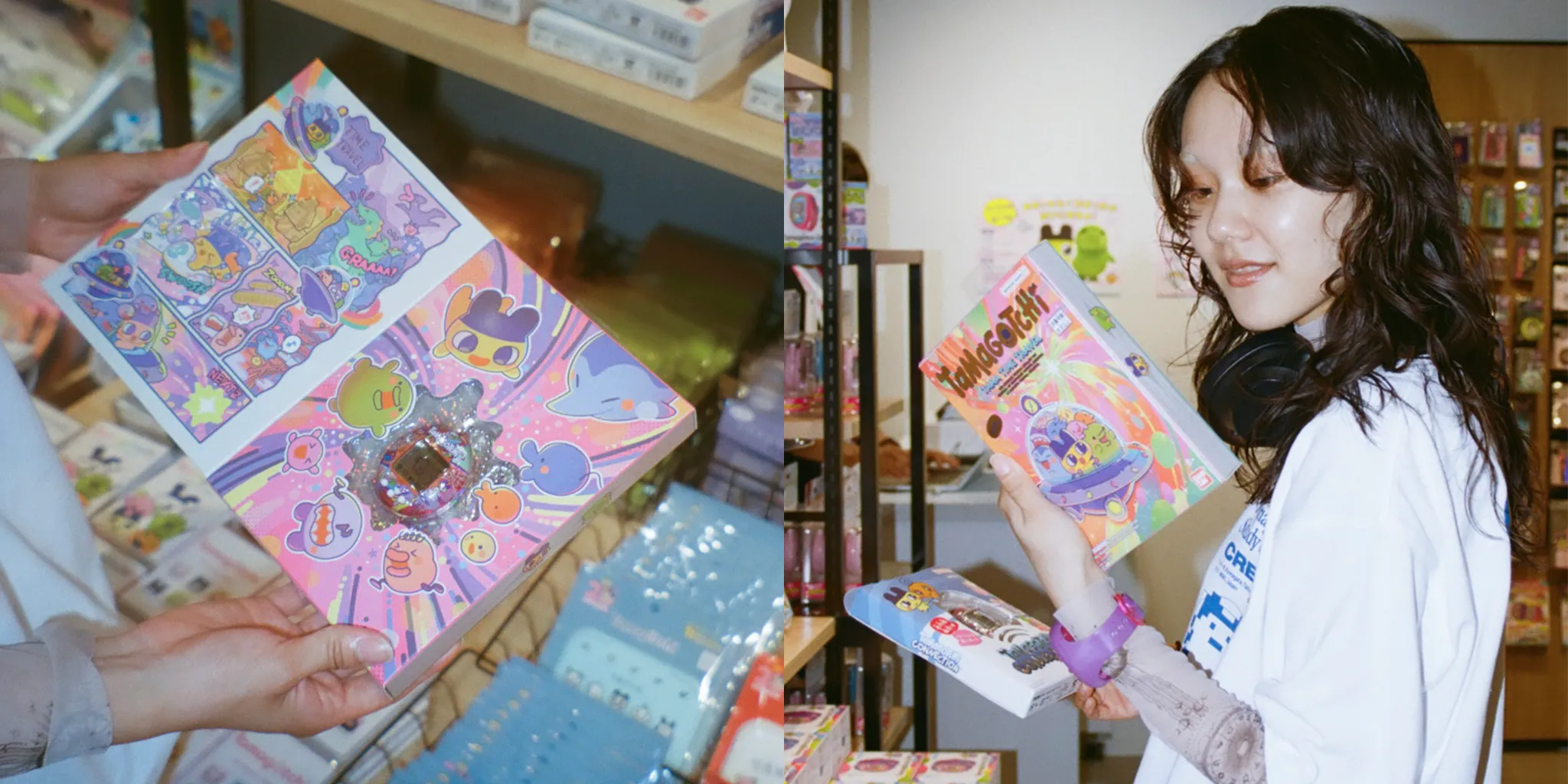 kiyuuさんが手に取ったのはポップアップ限定のOriginal Tamagotchi Tama Time Travel。漫画のようなスペシャルパッケージ付き。