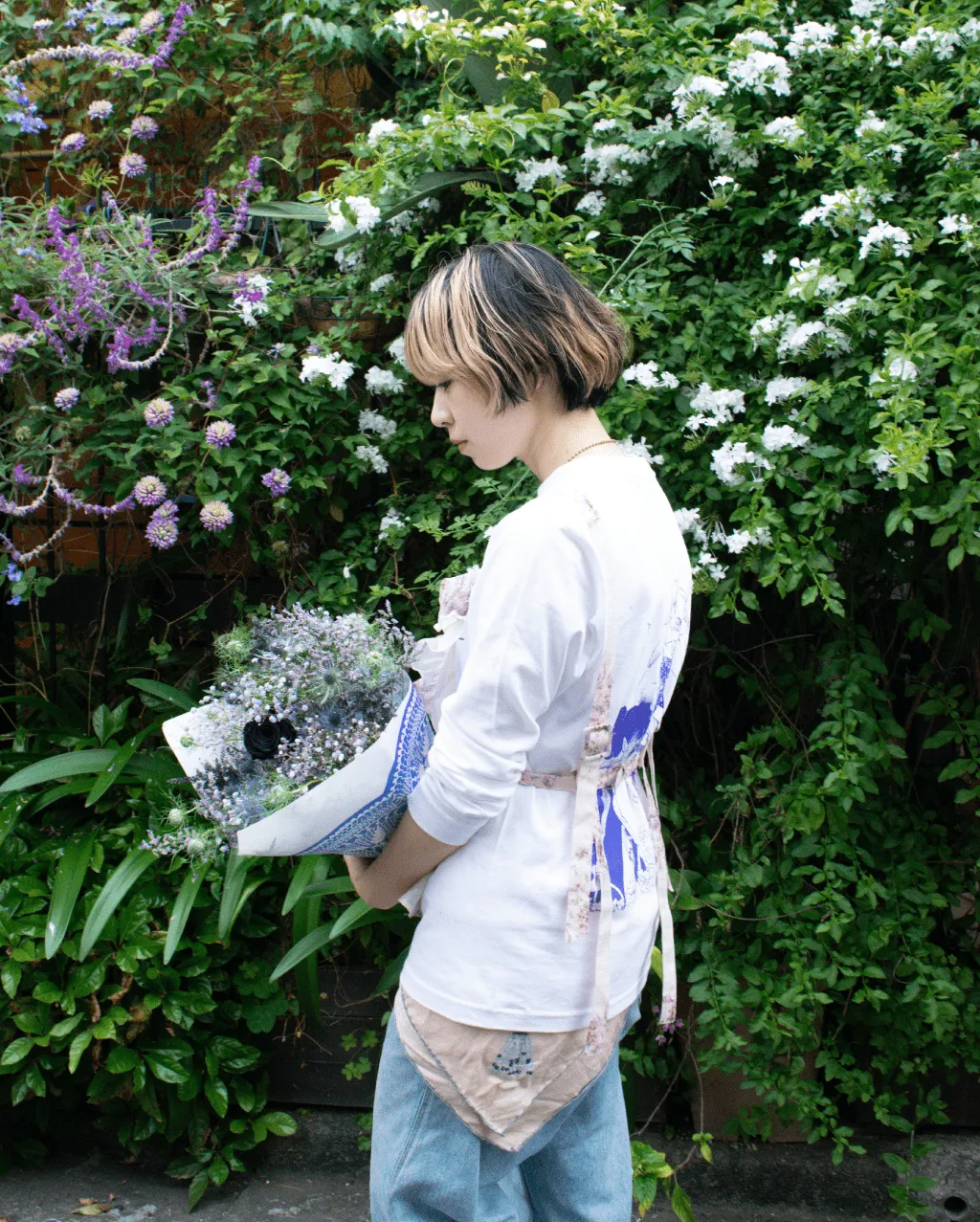 uwa:たとえば誰かに会う時に「どんな服を着ようかな」って考えるのって、相手の環境や服装、会う場所や目的に合わせて選んでいると思うんです。それって花を贈るときも同じで、贈る相手に合わせて考えます。たとえば妊婦さんなら香りがきつくない花にするとか、猫を飼ってる人には猫に害のない種類にするとか。そういう気遣いの視点が、服と花ってちょっと似てるなって、自分の中では感じています。