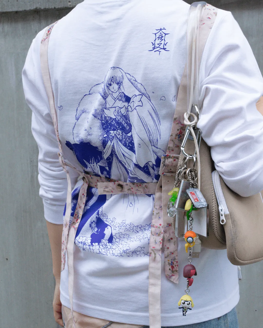 uwa:神楽は物語が進んでいくにつれて応援したくなったキャラクターの一人なんです。このバックにプリントされている、最期に殺生丸と会えるシーンはとても印象に残っていて、着ていると優しい気持ちになれる気がします。