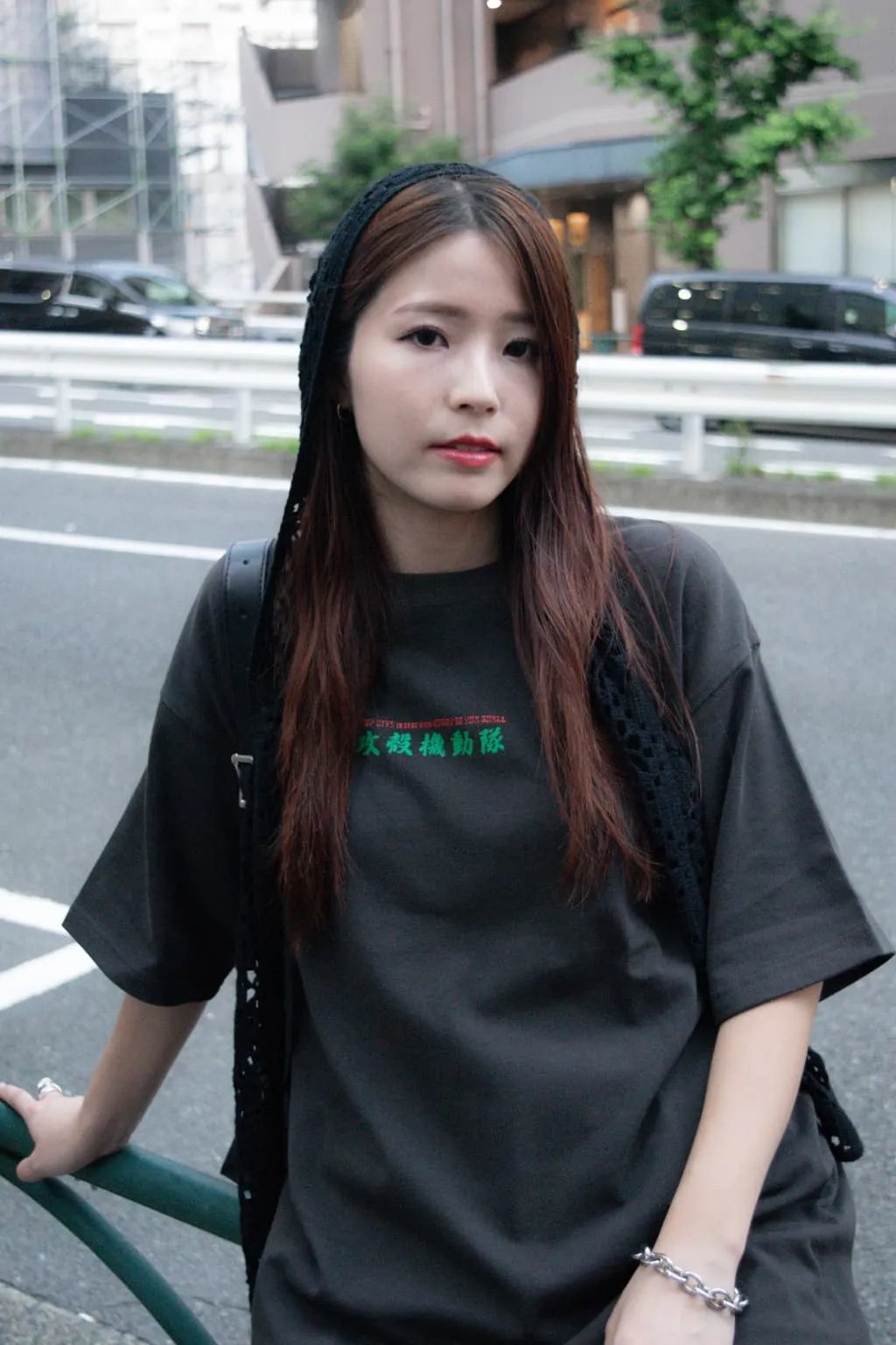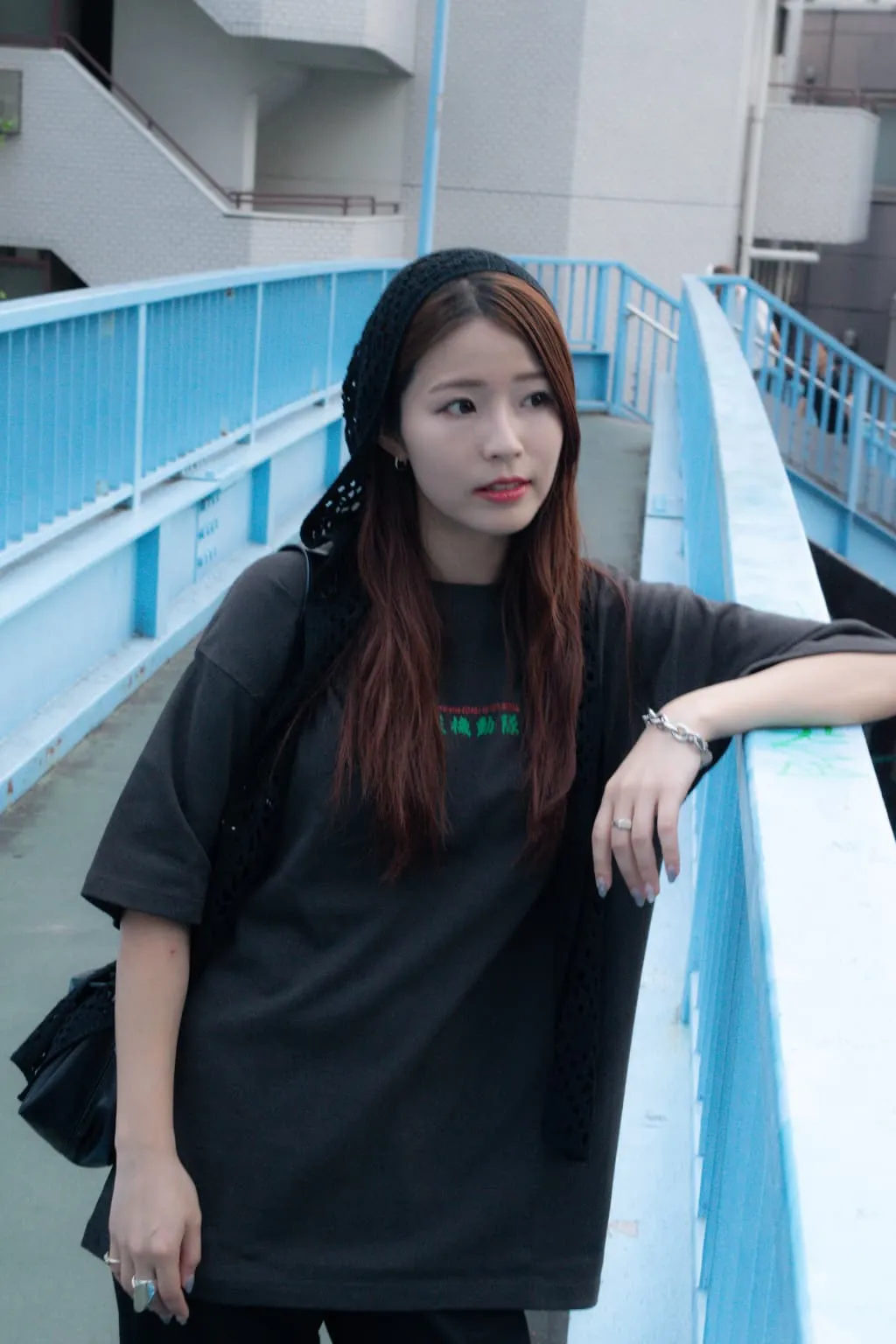 erika:Tシャツがオーバーサイズでメンズっぽかったので、靴を綺麗めにして、アクセサリーも合わせて、カジュアルになりすぎないようにしました。