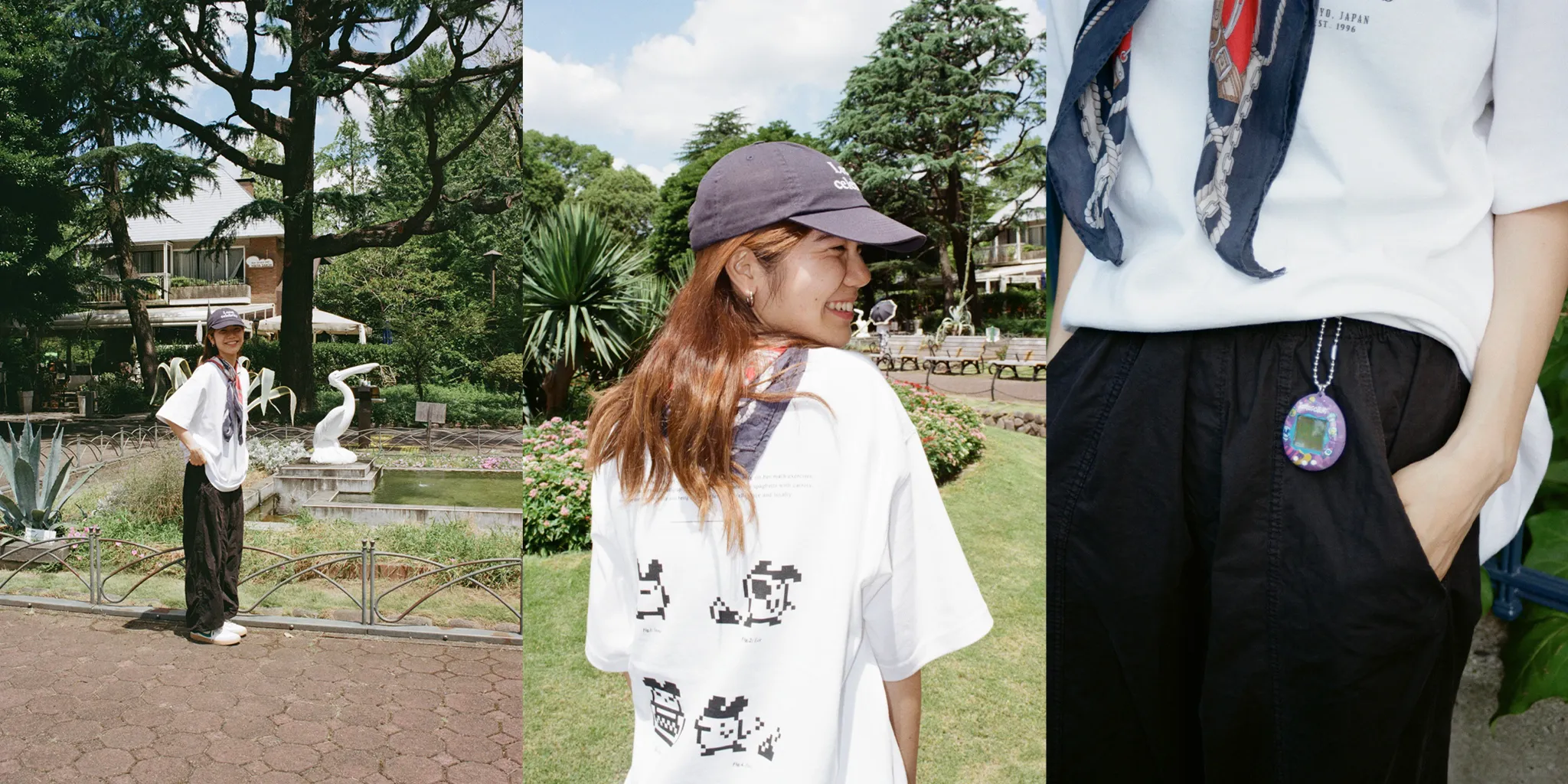 Tomoe:日本のアニメや漫画やゲームのカルチャーをお洒落にファッションに落とし込んでたりしていて、すごくいいなと思う!XGは私達の世代で好きな人が多いと思うから、たまごっちのコラボレーションは「懐かしい!欲しい!」という気持ちをうまくくすぐっているなと思った。あとは小さい頃に慣れ親しんだたまごっちが、またブームを起こしていて時代が回っていることを実感した!