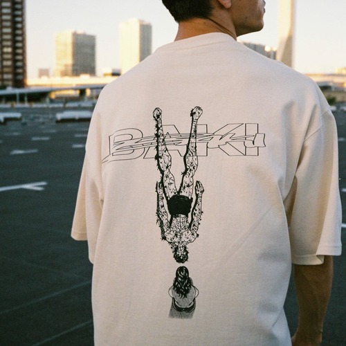 「刃牙」シリーズより、"範馬 刃牙"と"松本 梢江"の印象的なシーンをバックにプリントしたT-Shirts。