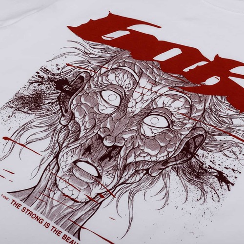 印象深いキャラクターの1人として存在感を放つ郭海皇の様々なシーンの中でも、特に記憶に残っている大擂台賽編の、大将戦での範馬勇次郎との激しい戦いの一場面をあしらったT-Shirts。