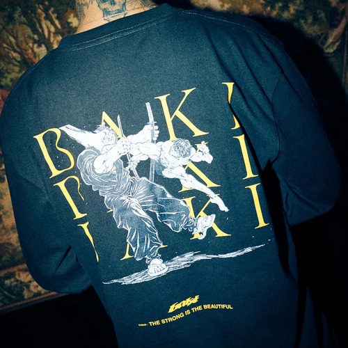 「刃牙」シリーズの中でも史実を基にした唯一のキャラクター、武蔵をプリントしたT-Shirts。