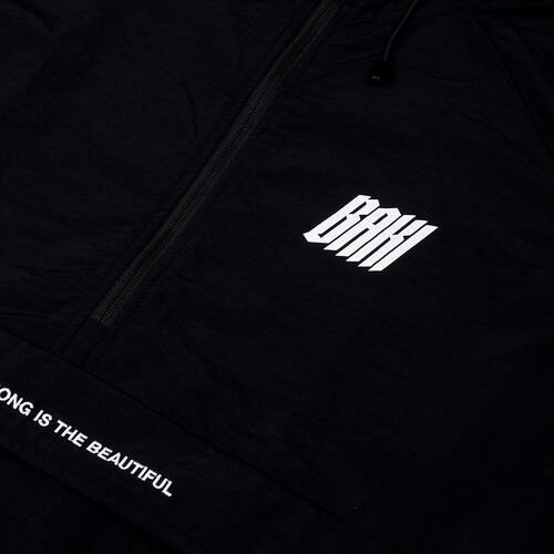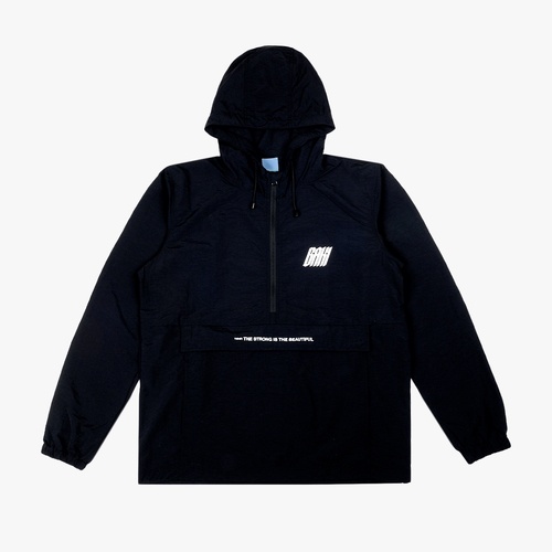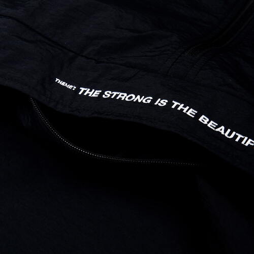 フラップ部分の「THE STRONG IS THE BEAUTIFUL」は刺繍で表現したこだわりの一着。