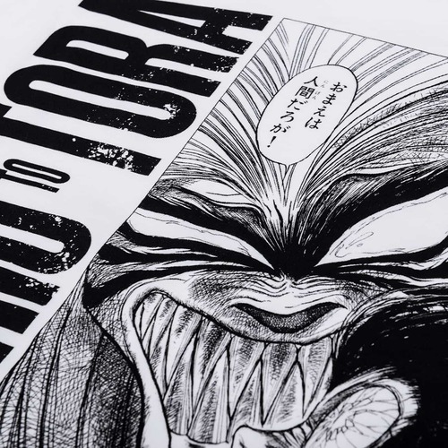 『うしおととら』第二十一章「変貌」其ノ九「真由子・とら」より、とらの印象的なセリフにフォーカスしたT-Shirts。