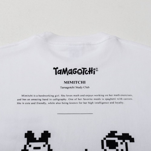 「たまごっち」より、みみっちの生態についての研究がまとめられたT-Shirts。
