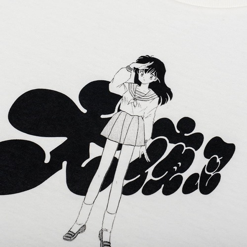 『犬夜叉』10巻 第7話「水神」より、かごめの立ち絵と犬夜叉ロゴを組み合わせた、爽やかなデザイン。女性向けの細身T-Shirts。