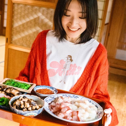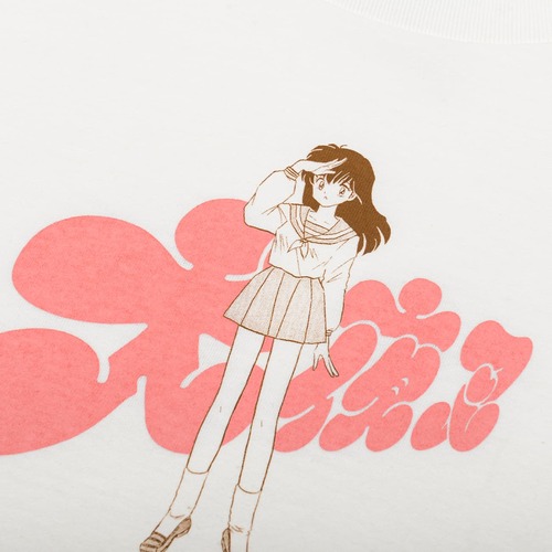『犬夜叉』10巻 第7話「水神」より、かごめの立ち絵と犬夜叉ロゴを組み合わせた、爽やかなデザイン。女性向けの細身T-Shirts。