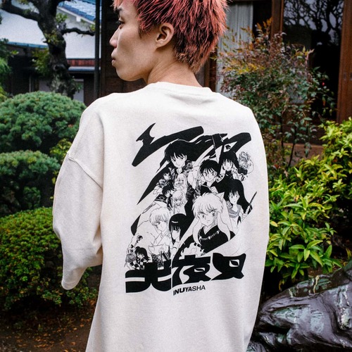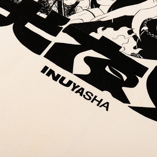 『犬夜叉』34巻 第9話「不妖璧」より、キャラクターの集合絵とオリジナルロゴを大胆に配置したデザインのT-Shirts。