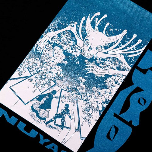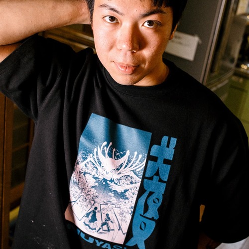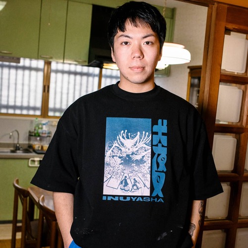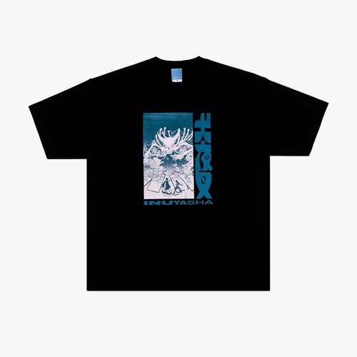 『犬夜叉』49巻 第4話「狙われた飛来骨」より、飛来骨を狙う骨鬼と対峙する珊瑚と弥勒のシーンをデザインしたT-Shirts。