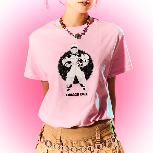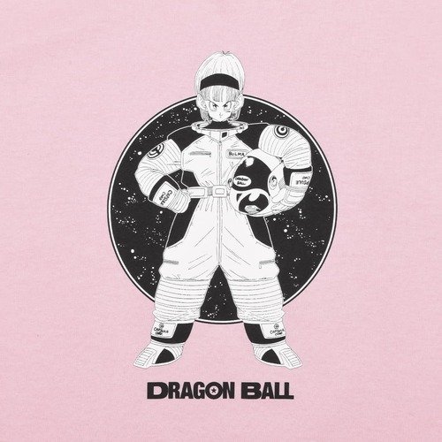 『ドラゴンボールZ』フリーザ編より、ナメック星へ向かうために宇宙服を着用したブルマを、フロントにプリントしたT-Shirts。