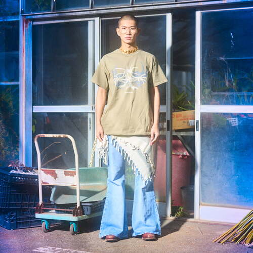 繊維に空気を多く含むオープンエンド糸を採用しており、ナチュラルでザックリとした風合いが特徴の一着。