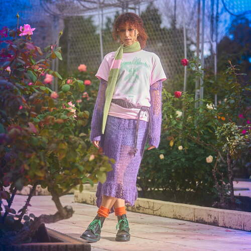 繊維に空気を多く含むオープンエンド糸を採用しており、ナチュラルでザックリとした風合いが特徴の一着。