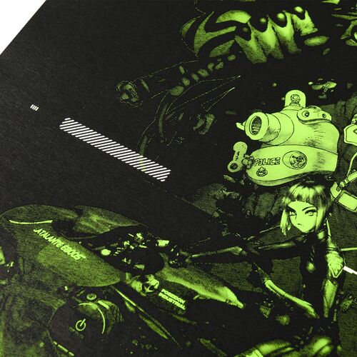 「士郎正宗の世界」を体現する、作品を横断したコラージュデザインのシルクスクリーンPoster。