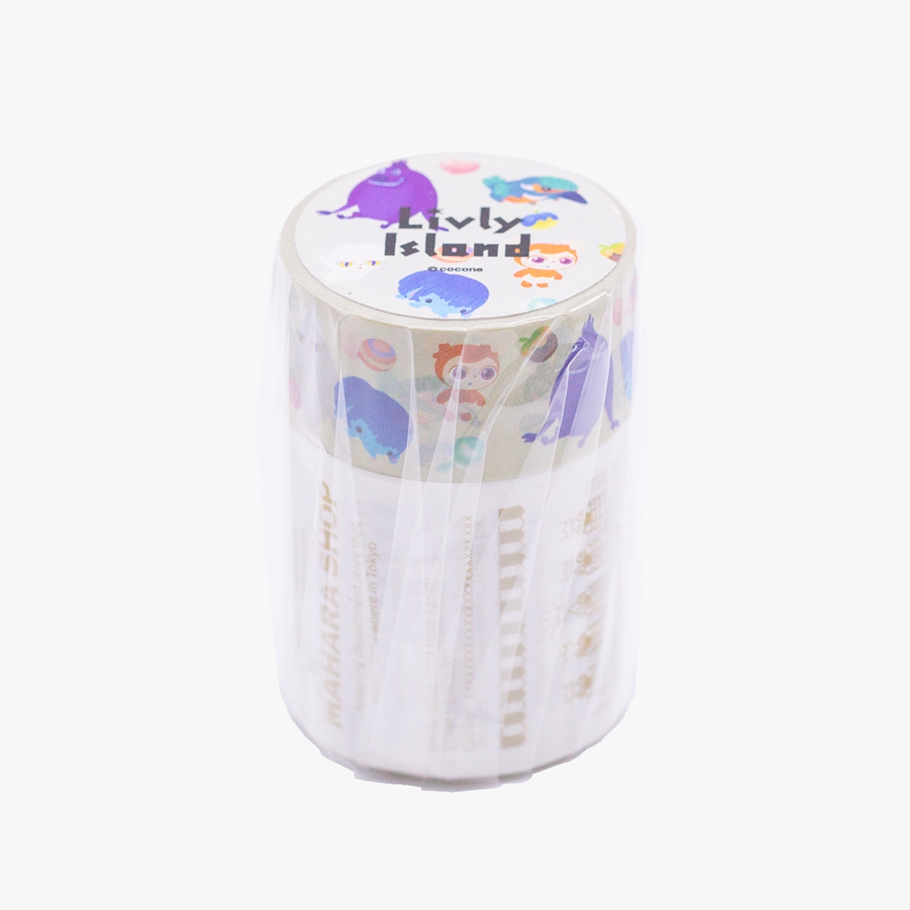 リヴリーアイランドに登場するモチーフがいっぱいのマスキングテープと、マハラショップのレシート模様のマスキングテープの2種類セットです。